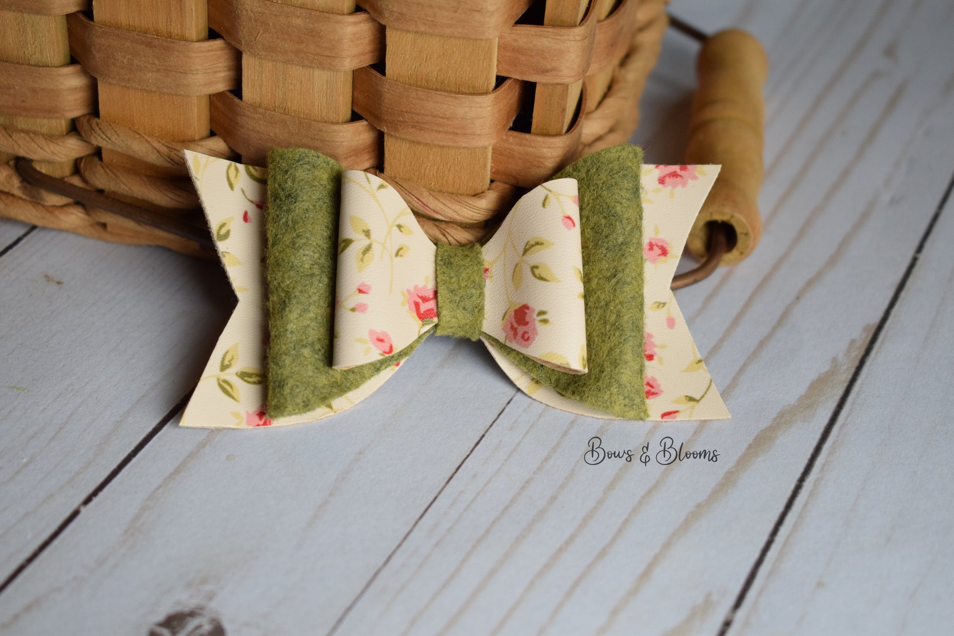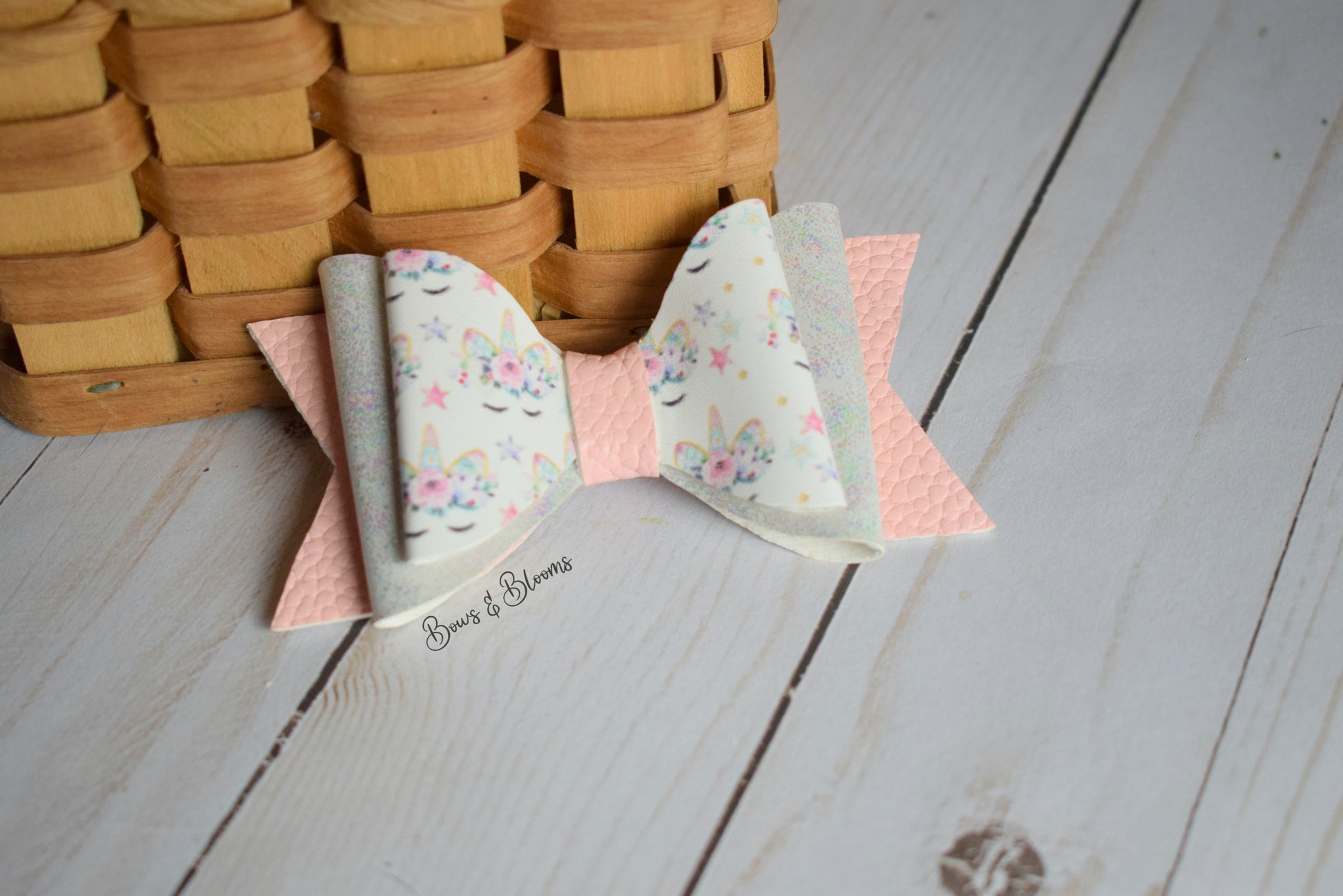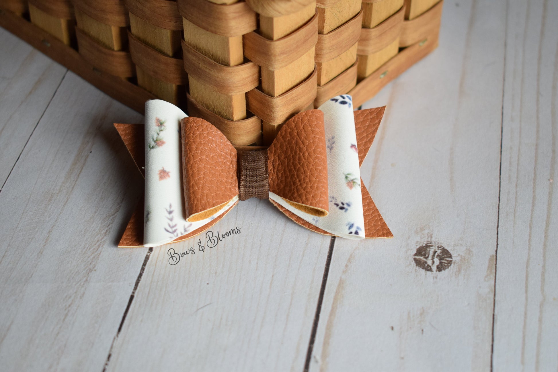 The "Dolly" Bow is a classic shape hair bow for all ages. Super cute as a ponytail topper! Made from faux leather and finished with an alligator clip.